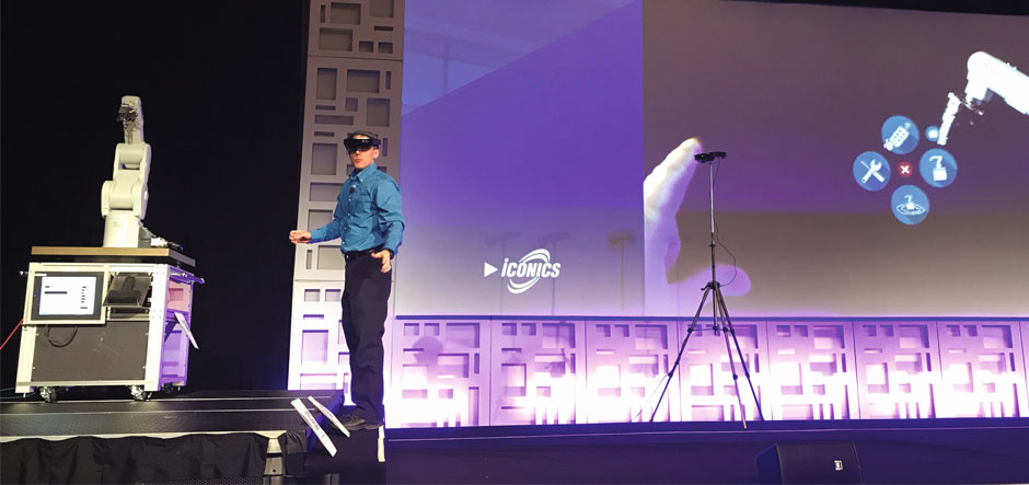 One scenario ICONICS showed was how Microsoft HoloLens could be connected to ICONICS IoTWorx through Microsoft Azure to create a collaborative robot (cobot). Using a Microsoft HoloLens, customers were able to manage a cobot as it performed a simple task.