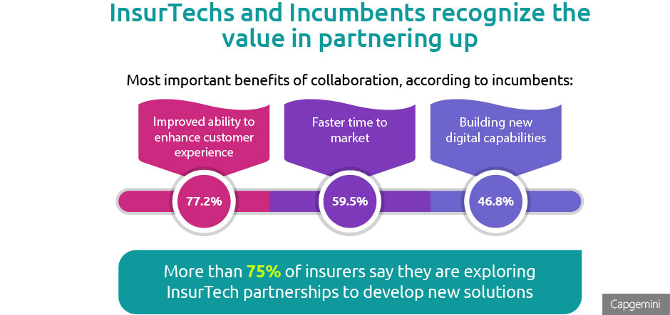 Almost 96% of insurers are looking for opportunities to collaborate with insurtech firms, according to a new report from Capgemini and Efma.