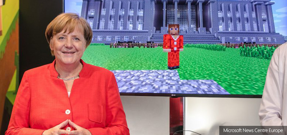 Chancellor Merkel went on to explore Microsoft’s Minecraft: Education Edition, which has proved itself to be a valuable, engaging learning tool. The solution can introduce a new approach to study and help children learn about a huge range of topics, from science, geography and history, to art, architecture, and much more.