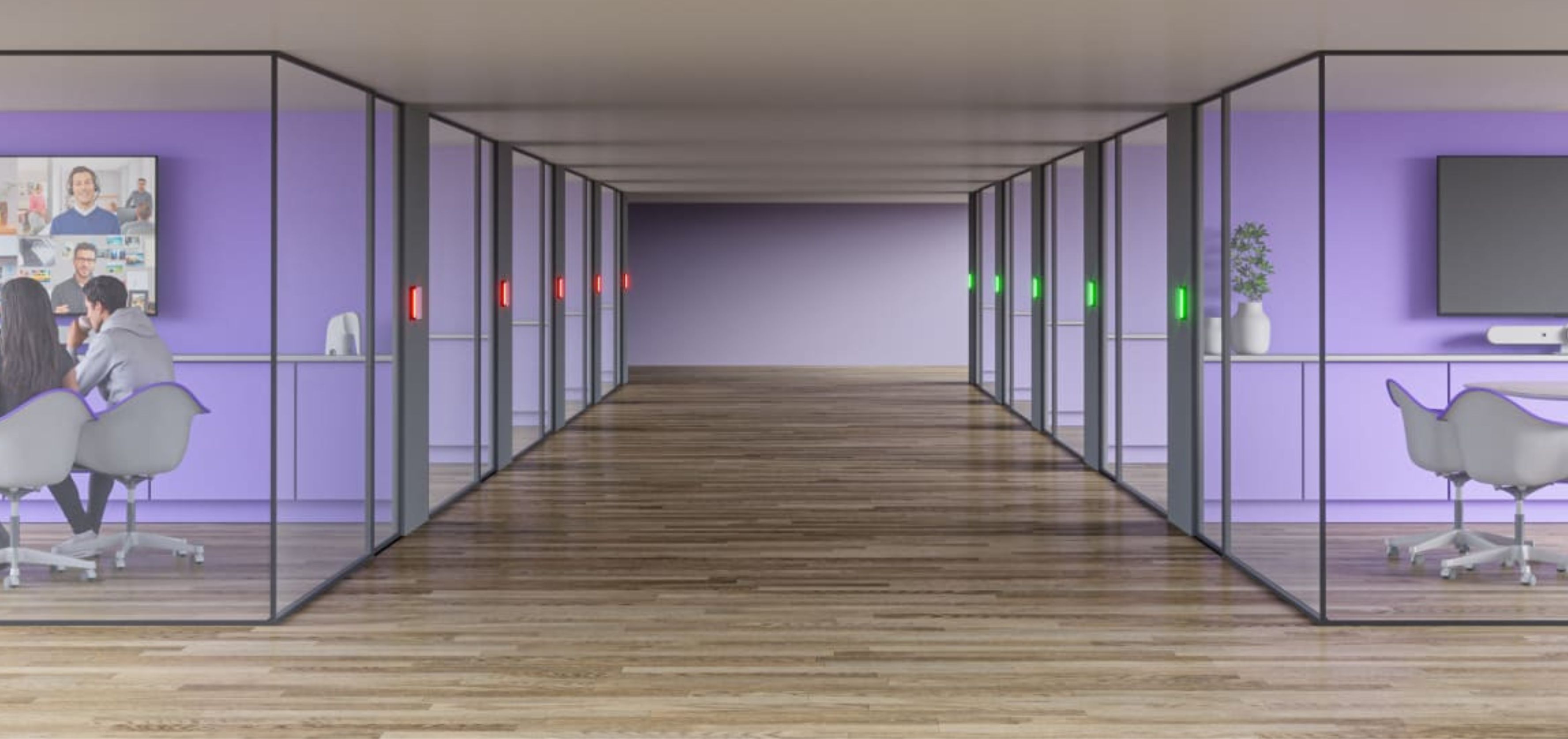 The product can be easily installed outside any meeting rooms, phone booths, video rooms and other company areas, with the included glass and wall mounts. LED lights show the availability of a room at a distance, helping employees quickly find the right meeting location.