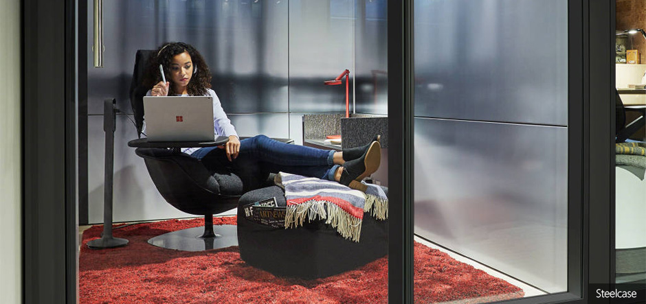 Microsoft and office furniture firm Steelcase are designing high-tech spaces that feature Microsoft devices to encourage productivity.